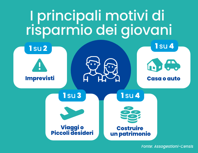 Perché risparmiano? Per la sicurezza quotidiana: il 53,5% mette da parte per fronteggiare imprevisti. Per sfizi e consumi: il 30,4% per viaggi e piccoli desideri. Ma si risparmia anche per acquisti importanti: il 26% per casa o auto. Mentre, il 24,6% vuole costruire ricchezza per un patrimonio futuro.