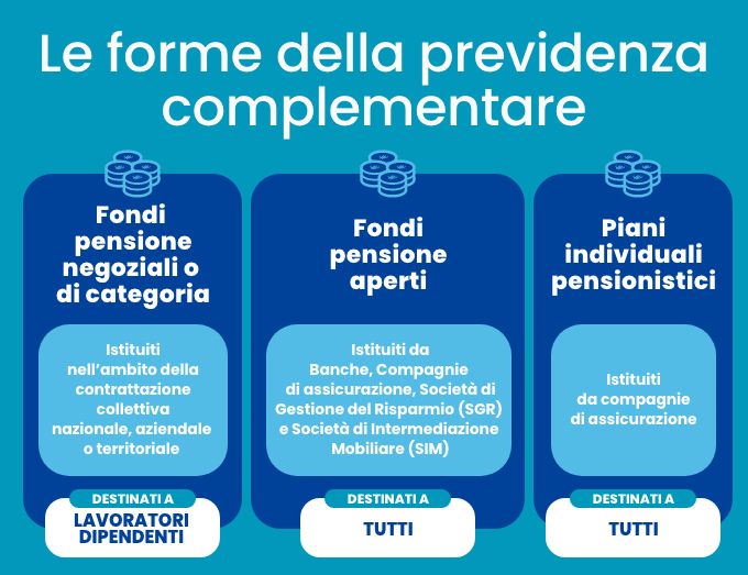 I soggetti autorizzati a istituire una forma di previdenza complementare sono diversi, e danno luogo a diverse forme: