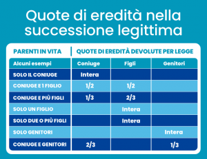 La tabella seguente mostra il meccanismo che regola la successione legittima in assenza di testamento, per alcune categorie esemplificative di soggetti: