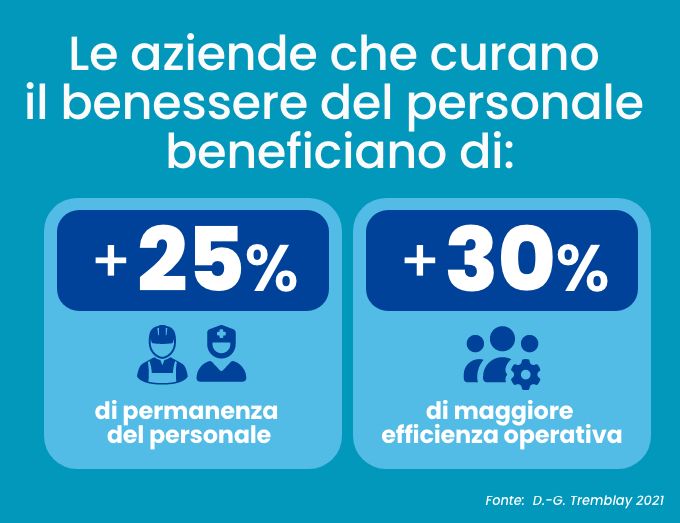 Un’altra famosa ricerca (D.-G. Tremblay 2021), ha evidenziato un +25% di permanenza del personale in strutture che adottano politiche di work-life balance, cioè l’insieme di misure, strumenti e pratiche per aiutare i propri dipendenti a conciliare meglio gli impegni professionali con quelli personali e familiari. Mentre lo studio di Wang ha fatto emergere che la cura per i dipendenti produce una maggiore efficienza operativa fino al 30%.